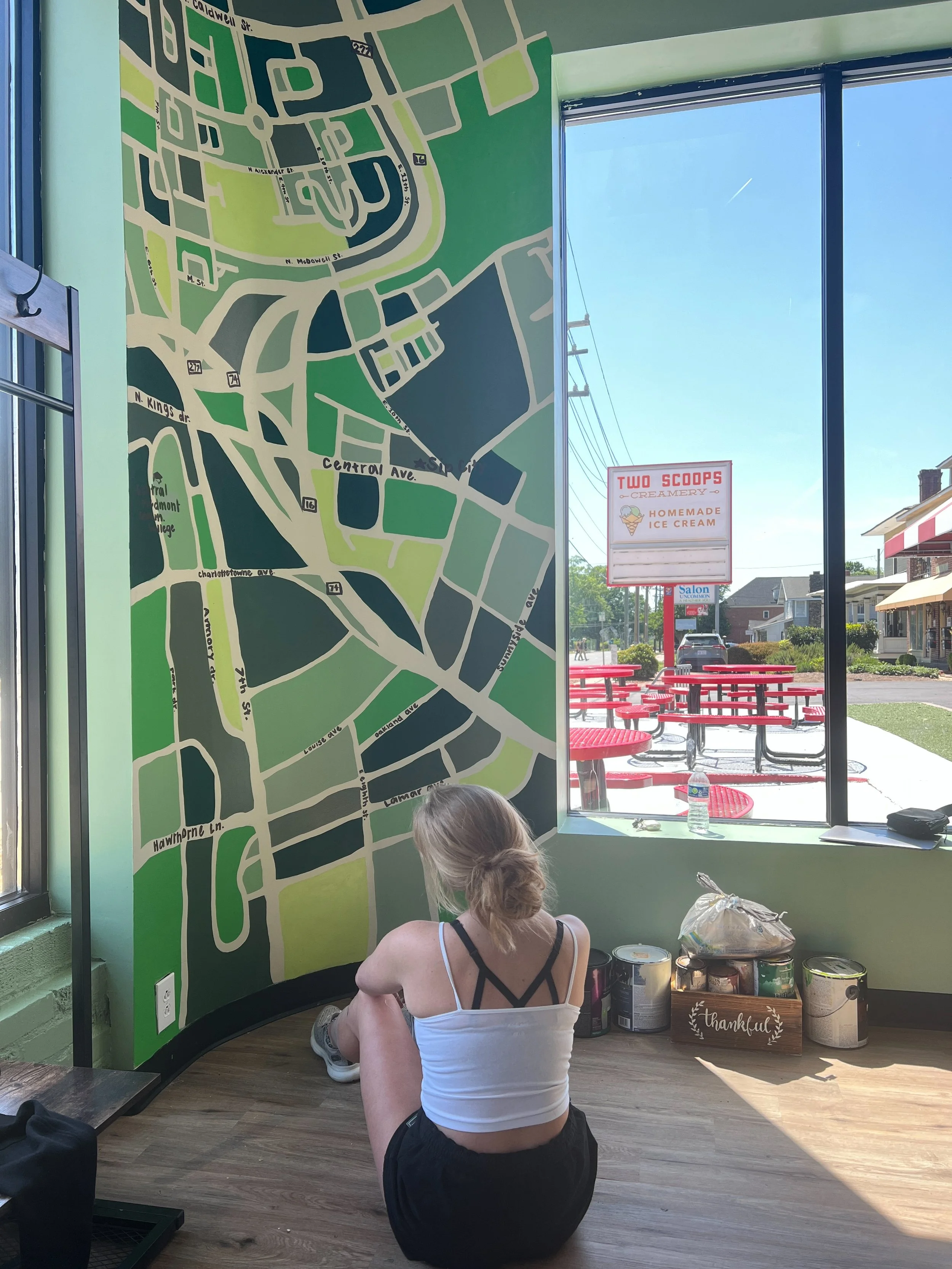 My journey as a muralist began in an unconventional manner. At the age of 22, during the Covid-19 pandemic, I volunteered to paint a mural outside of a retirement community in my college town. Nobody told me the wall extended over the length of a football field. Despite its gargantuan size and my utter lack of experience the goal was to uplift the residents during a isolating period, and I had no intention of backing down from that goal. After dedicating more than 200 hours and raising over $3,000, I completed my first mural. Since then, I have continued to pursue murals with the same goal in mind, uplifting those around me. I hope you enjoy what I have